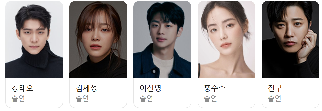 - 주요 출연: 강태오, 김세정, 이신영, 홍수주, 진구